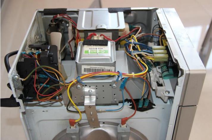 6、打開機(jī)殼將變壓器次級(jí)高壓電容器連接點(diǎn)插頭拔下,再換用一只10A保險(xiǎn)絲,開機(jī)后不再燒保險(xiǎn)絲,這說明此故障在高壓電路中。檢查發(fā)現(xiàn)磁控管燈絲對其殼體本身短路,更換同型號(hào)的磁控管,故障排除。